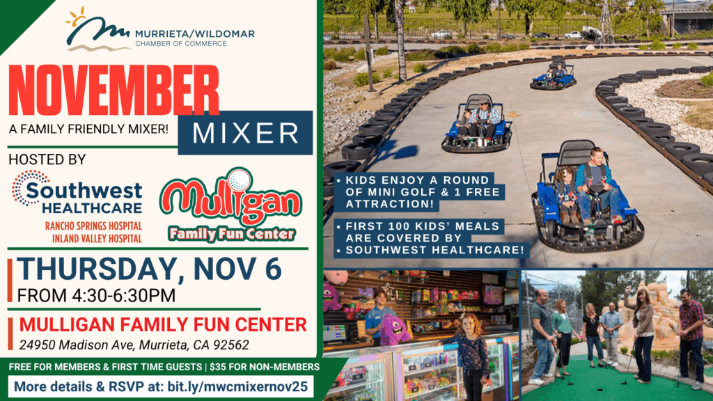Looking for a local spot packed with excitement? Mulligan Family Fun Center in Murrieta is your go-to for unforgettable family adventures. With attractions like go-karts, laser tag, arcade games, and mini golf, it’s a top pick for weekend outings, birthdays, or group events. Whether you’re entertaining little ones or just want a day of laughs and thrills, our all-in-one family fun center delivers.