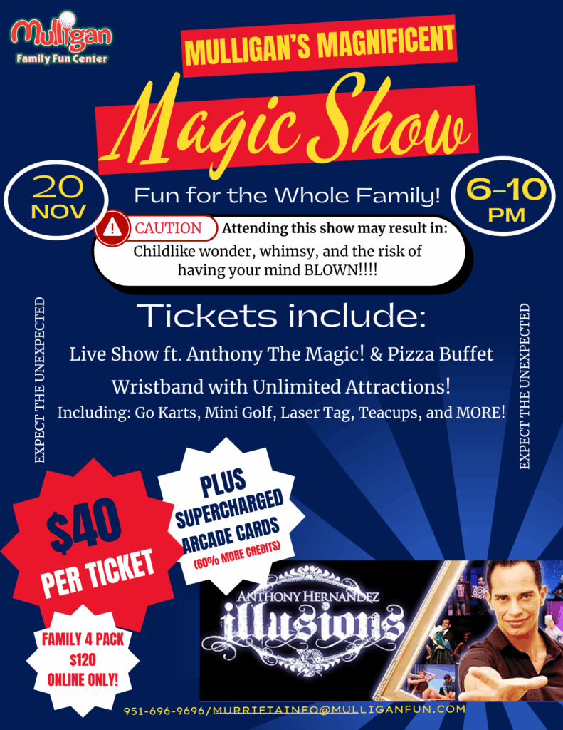 Looking for a local spot packed with excitement? Mulligan Family Fun Center in Murrieta is your go-to for unforgettable family adventures. With attractions like go-karts, laser tag, arcade games, and mini golf, it’s a top pick for weekend outings, birthdays, or group events. Whether you’re entertaining little ones or just want a day of laughs and thrills, our all-in-one family fun center delivers.